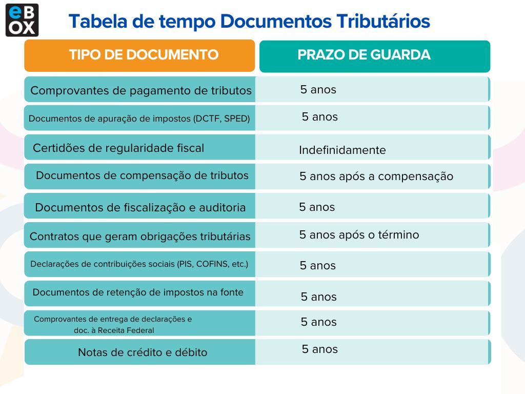 Qual a importância da tabela de tempo de guarda de documentos para a empresa?